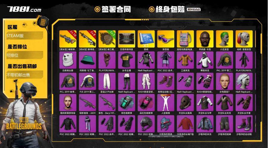 1张图纸 10级霓虹AUG 10级青龙762 10级南瓜M4 8级恶魔ACE 6级沙悟净MINI 2级白虎锅 1级孙悟空M24 1级玄武SKS 青龙762(异色) 天蓝色烟雾弹 橘色烟雾弹 紫色魔法迷雾-M79 柏林鞋 小黑盒 黑绷带 保时捷卡宴 交易所接待室 黑鬼1张图纸10级霓虹AUG10级青龙76210级南瓜M48级恶魔ACE6级沙悟净MINI2级白虎锅1级孙悟空M241级玄武SKS青龙762(异色区服类型: 绝地求生 |