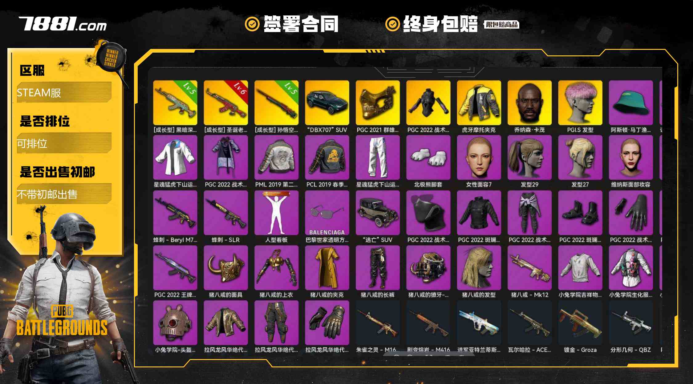 【可排位 不带初邮出售 是否为豪华版:是 生存等级:0 未定级】A10183/Steam/可排位/5段500级/5级水麒麟/6级圣诞AK/5级孙悟空/马丁SUV/金面/发光手臂/黑鬼/巴黎世家透明方形墨镜/逃亡SUV/西游记大礼包/详情看图