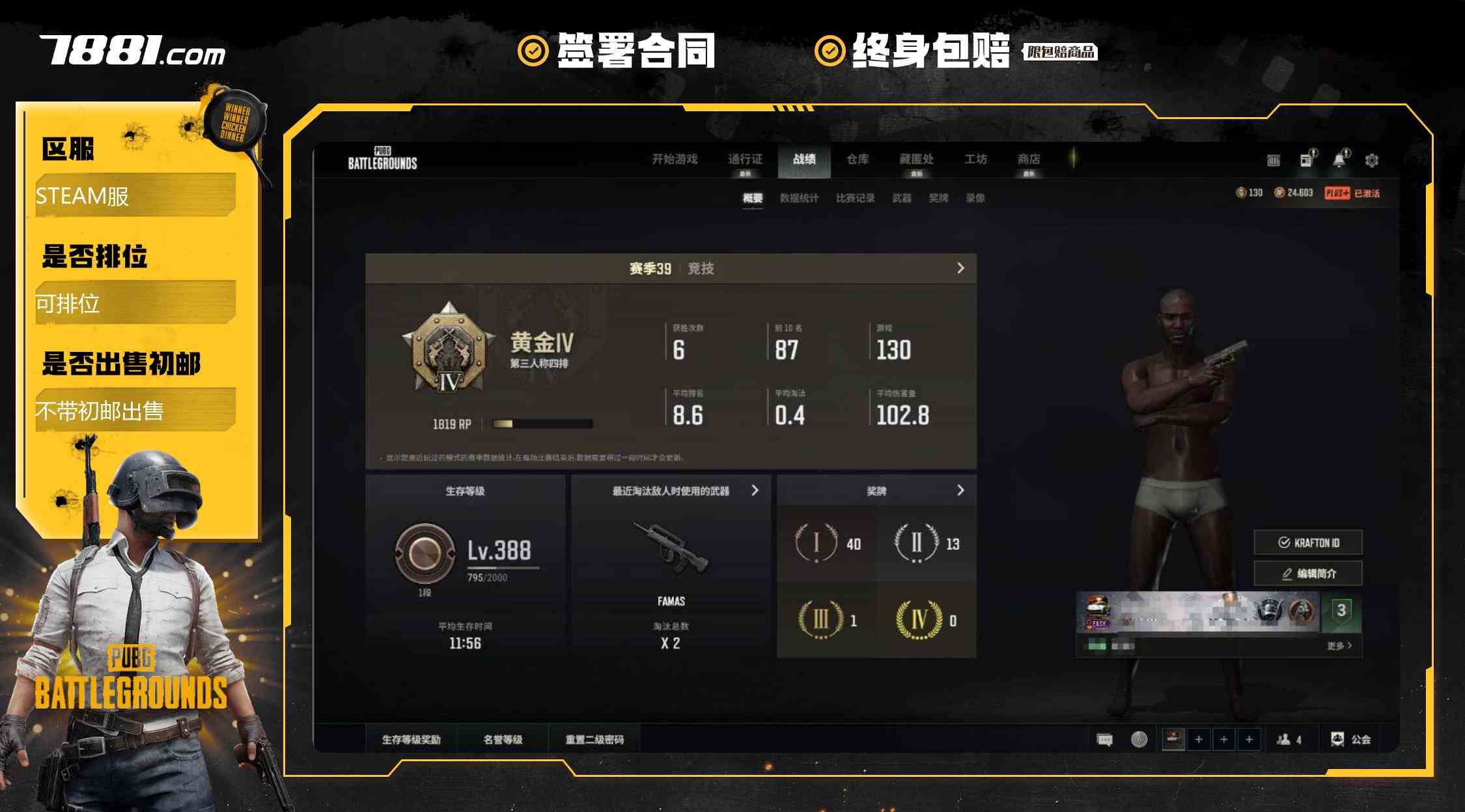 【可排位 不带初邮出售 是否为豪华版:是 生存等级:0 未定级】A10119/Steam/可排位/1段388级【6级-无重力MP5K】【保时捷卡宴】异色-无重力MP5K/4级-魔咒之力-MK12/4级-猛虎猎手-98K/1级-幽影残魂-AWM/1级-美杜莎-M762/1级-妖魔之触-ACE32/瀚娜/乔纳森·卡茂/详情看图 ,4级魔咒之力-Mk12