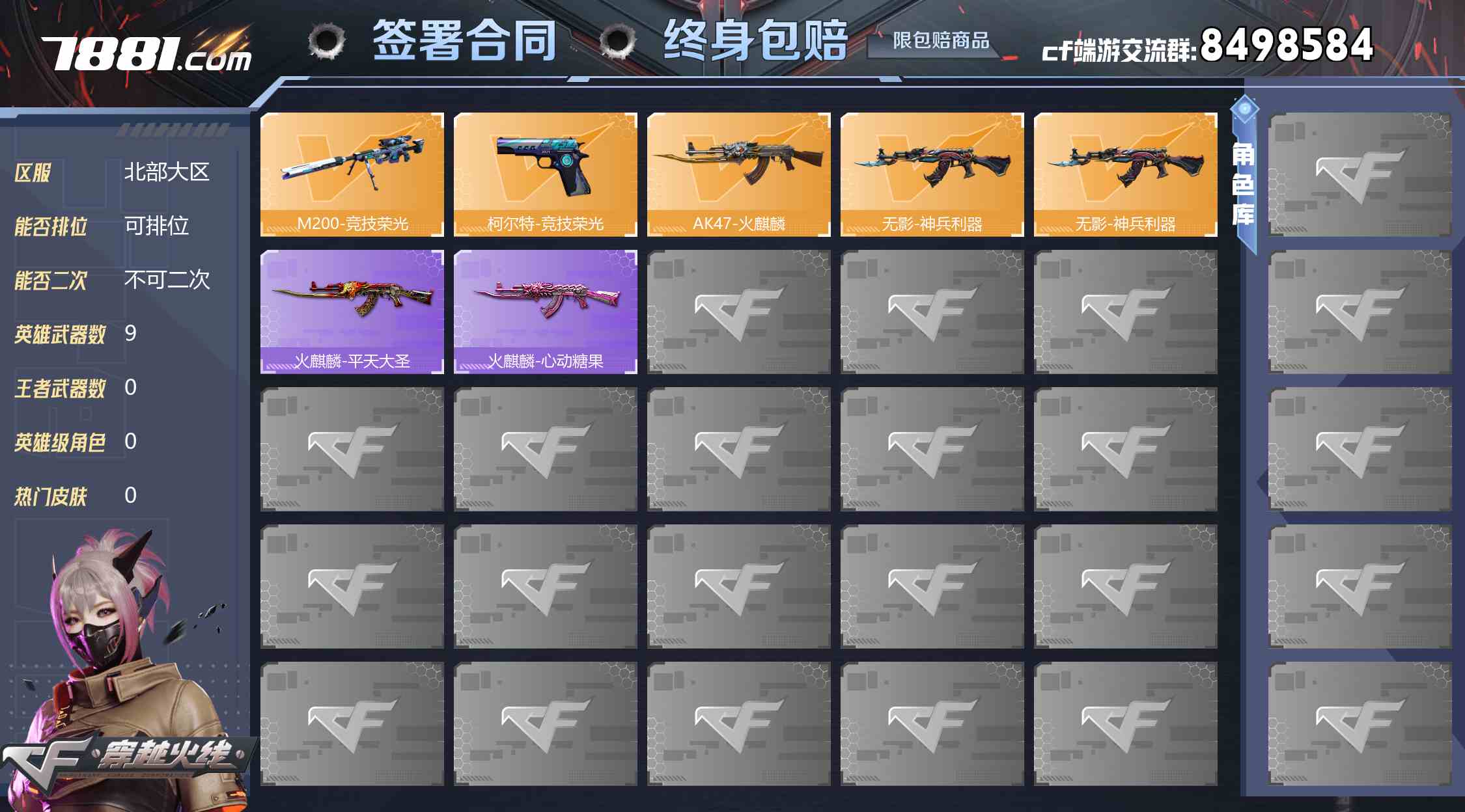 【不可二次 英雄武器数量:9 英雄角色数量:0 王者武器数量:0 无影-神兵利器 稀有武器:2个 爆破号】退游了 便宜卖
