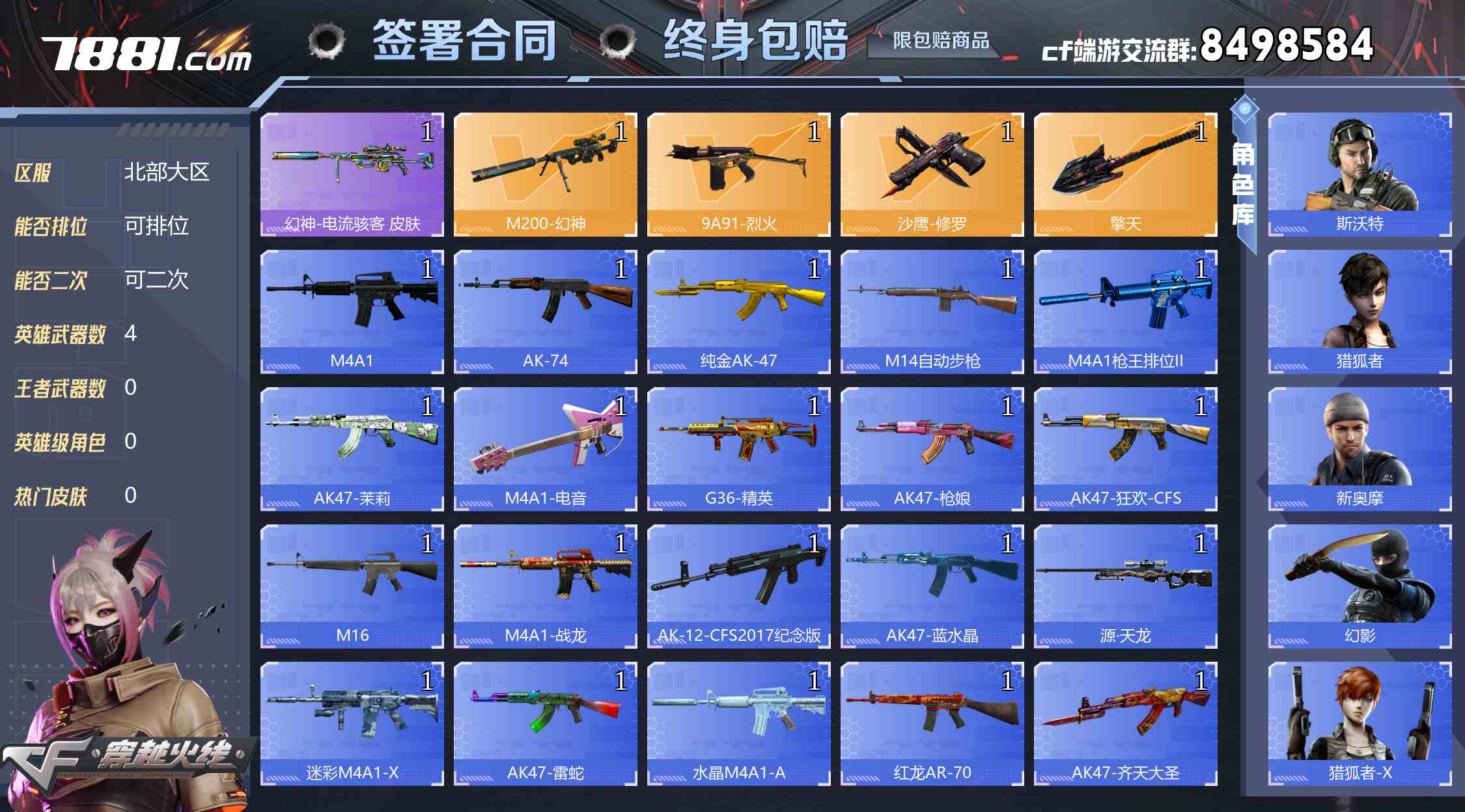 【可二次 英雄武器数量:4 英雄角色数量:0 王者武器数量:0 幻神-电流骇客 皮肤 稀有武器:1个 爆破号】幻神小号