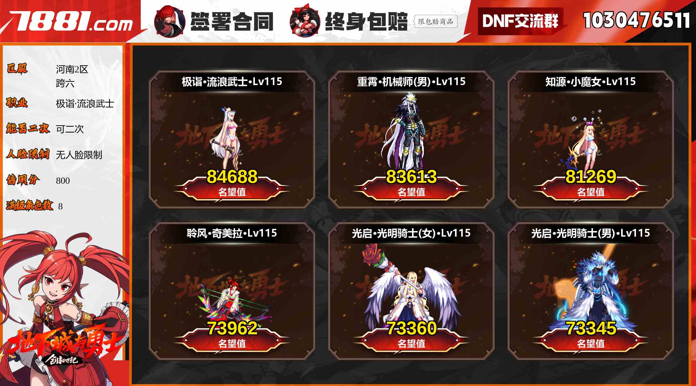 【主职业: 极诣·流浪武士 次要职业: 重霄·机械师(男) 太初武器:特型-武神凌云剑 太初装备:玲珑的黄金乡荣耀-手镯,黑牙:深邃的潜影戒指-毒 无制裁记录 可二次 无人脸限制 信用分:800 满级角色数:8 主角色名望值:84688 毕业武器:增幅13 增幅12:11件 至尊称号:万壑松风之凌云志-2025 至尊宠物:菩提龙女-2025】2个25年双尊2个增幅12的角色1个增幅11奶萝2个增幅10的Z新年套2个