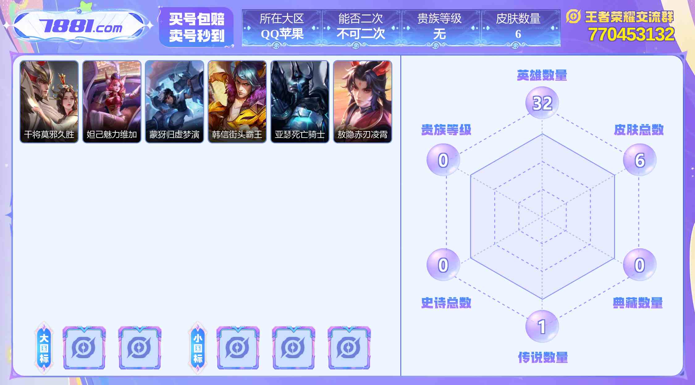 【倔强青铜 英雄数量:32 皮肤数量:6 传说皮肤:1个 皮肤价值:4728】账号等级30级,中单专用账户,适合从零到国标冲刺专用账户